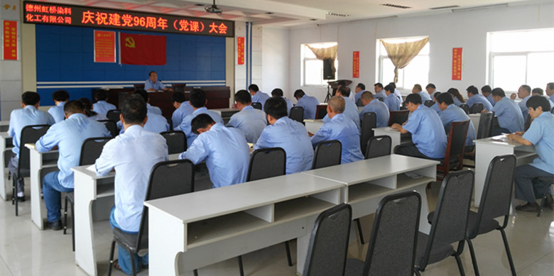 德州虹橋染料化工有限公司三個(gè)支部的全體黨員于2017年7月8日上午9點(diǎn)在公司辦公樓4樓黨員活動(dòng)室進(jìn)行了“慶祝建黨96周年(黨課)大會(huì)”學(xué)習(xí)。這是今年以來(lái)3個(gè)支部全體黨員第一次集體學(xué)習(xí)。黨課開(kāi)始前,全體黨員站在黨旗下,莊嚴(yán)的重溫入黨誓詞(視頻播放)。本次黨課學(xué)習(xí),由公司董事長(zhǎng)黨總書(shū)記吳高樓主持,在紀(jì)念我黨建黨96周年之際,公司黨總支委員總經(jīng)理申書(shū)信同志以“化工行業(yè)安全”為主題,講了德州虹橋染料化工有限公司當(dāng)前面臨的生產(chǎn)安全環(huán)境和實(shí)際困難,用近期周邊其他化工單位發(fā)生的安全事故,聲情并茂,娓娓道來(lái),為黨員們敲響安全的警鐘。黨員們對(duì)安全生產(chǎn)的認(rèn)識(shí)又提高了一個(gè)層次。吳總要求黨員們要積極發(fā)揮黨員的先鋒模范作用,以實(shí)際行動(dòng)為榜樣,帶動(dòng)德州虹橋所有職工牢記安全生產(chǎn),人人有責(zé)。。