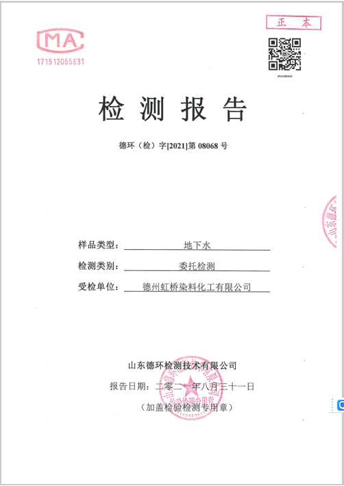德州虹橋染料化工有限公司地下水檢測報告2021.08.31